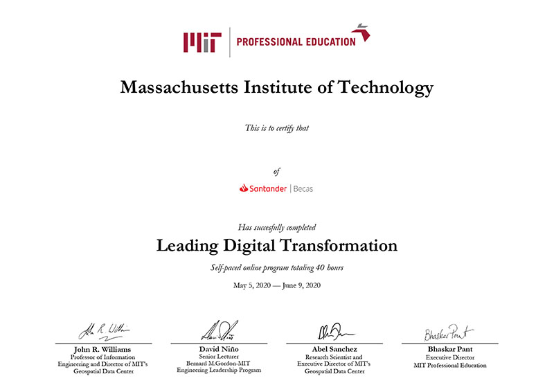 Certificate of Completion Santander – English, Spanish, Portuguese and Polish