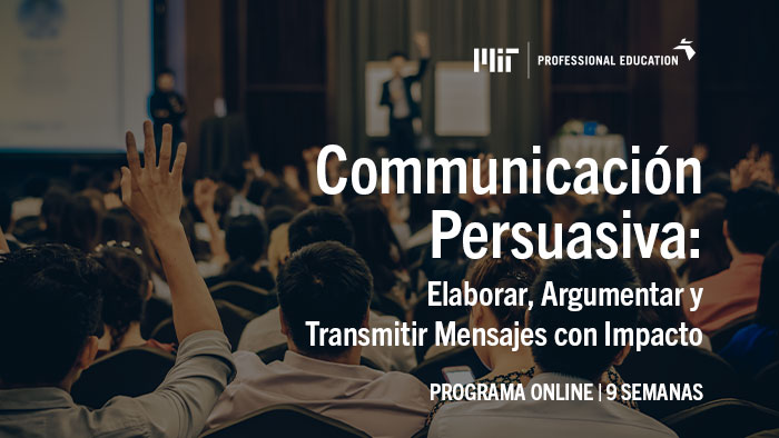 El programa online de MIT Professional Education Comunicación Persuasiva pretende ayudar a los participantes a perfeccionar sus habilidades interpersonales en áreas vitales como hablar en público, pensamiento crítico, comunicación digital, persuasión visual y adaptación a la audiencia tanto virtualmente como en persona.