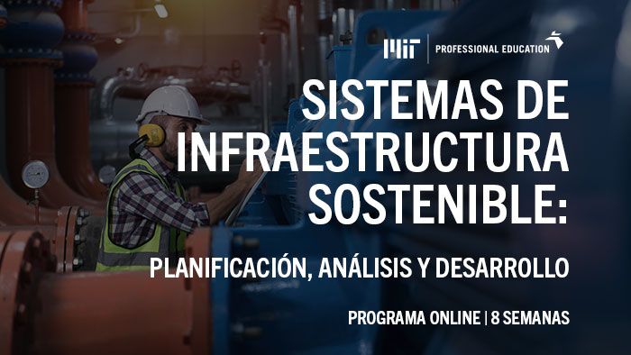 Con el curso online de MIT Professional Education, Infraestructura sostenible, explorarás la teoría de sistemas como la base del análisis, desarrollo e ingeniería de sistemas tecnológicos sostenibles. Este curso te equipará con los conocimientos y habilidades necesarios para ganar un amplio entendimiento de todos los aspectos de la infraestructura sostenible, desde política pública y planificación hasta gestión de operaciones y recopilación de datos.