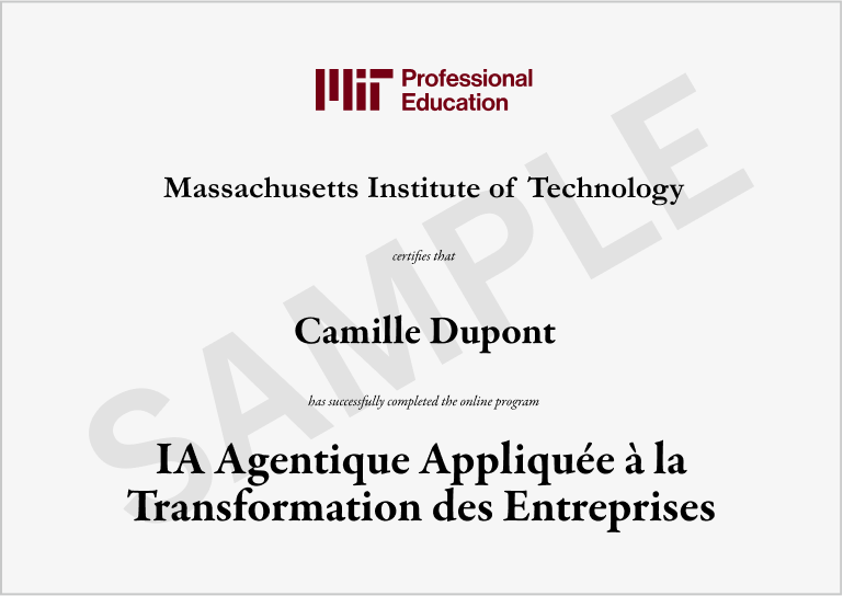 Tous les participants qui terminent avec succès le programme auquel ils sont inscrits recevront un certificat de réussite (Certificate of Completion) délivré par le MIT Professional Education, ainsi que des Unités d’Éducation Continue (CEU)*.