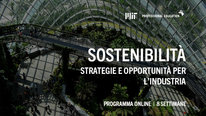 Il programma online Sostenibilità: strategie e opportunità per l’industria di MIT Professional Education ha l’obiettivo di preparare i professionisti di vari settori fornendo loro le competenze necessarie per migliorare la sostenibilità nelle loro attuali operazioni commerciali. Come partecipante, scoprirai anche gli strumenti necessari nell’ambito della sostenibilità per trasformare le conoscenze acquisite nel corso di questo programma in strategie reali e attuabili nella tua organizzazione.