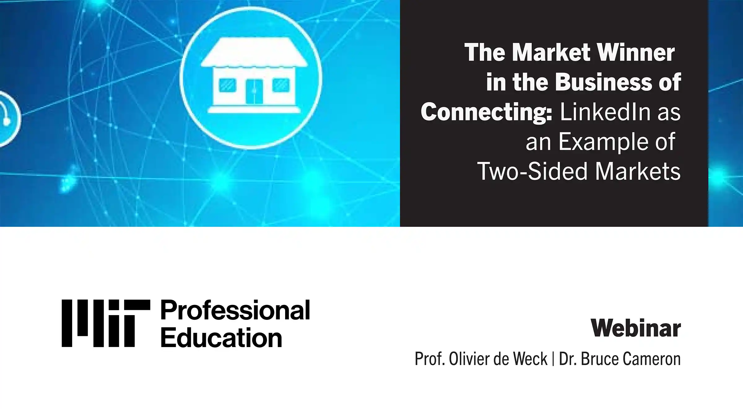 In this webinar, “The Market Winner in the Business of Connecting: LinkedIn as an Example of Two-Sided Markets,” we are joined by Dr. Bruce Cameron and Professor Olivier de Weck. With their guidance and experience, our two experts will be exploring the dynamics of the well-known social media platform and wildly successful two-sided market to understand how to model our own ventures for higher rates of success.