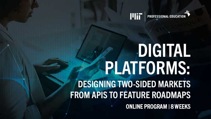 MIT Professional Education’s online course Digital Platforms aims to guide participants as they design and develop effective digital platforms. This course employs a technical approach to building loyal consumer bases and differentiated products, taking an in-depth look at features, APIs and standards.