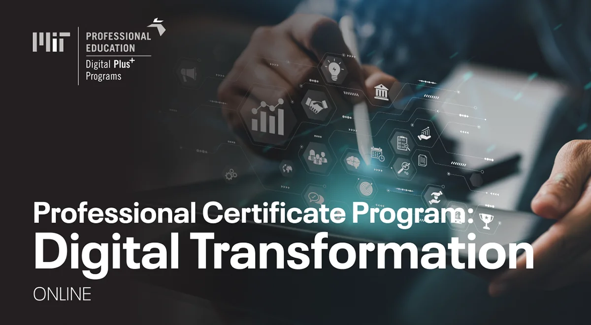 MIT Professional Education’s Certificate Program in Digital Transformation equips managers with the insights, skills, and innovative mindset needed to enhance leadership, retain talent, and build high-performance teams. It prepares you to navigate the digital age by understanding technological shifts and integrating key technologies within an inspiring leadership framework.